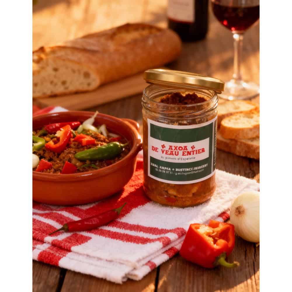 Descubre el tradicional axoa de ternera entera, de la granja Arpea, en el pueblo de Bustince-Iriberry, cercade Saint Jean Pied de Port. El verdadero axoa de ternera entero, con verdaderos trozos, cocinados como es debido. Comprando este producto, apoyas a nuestros productores de leche!
