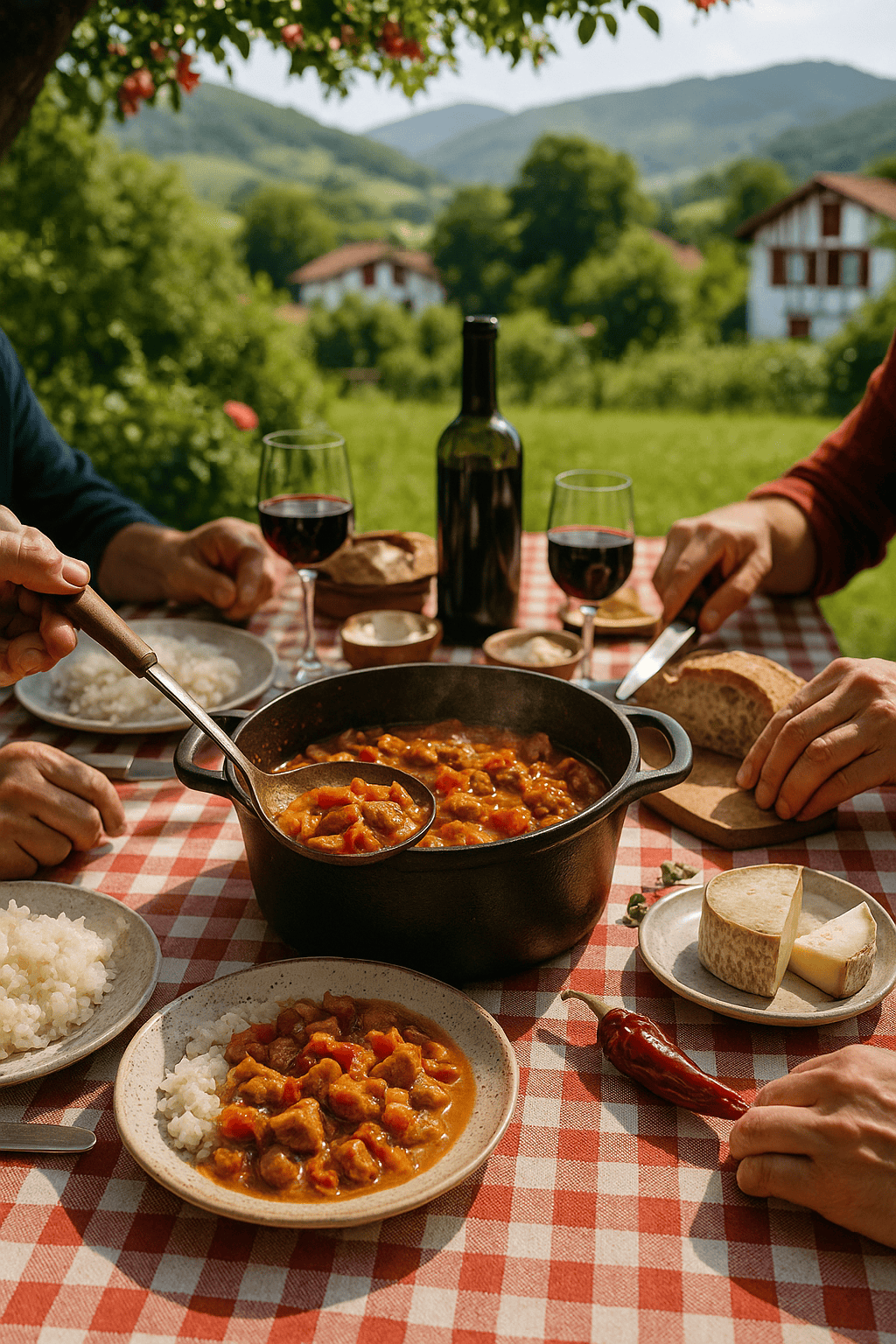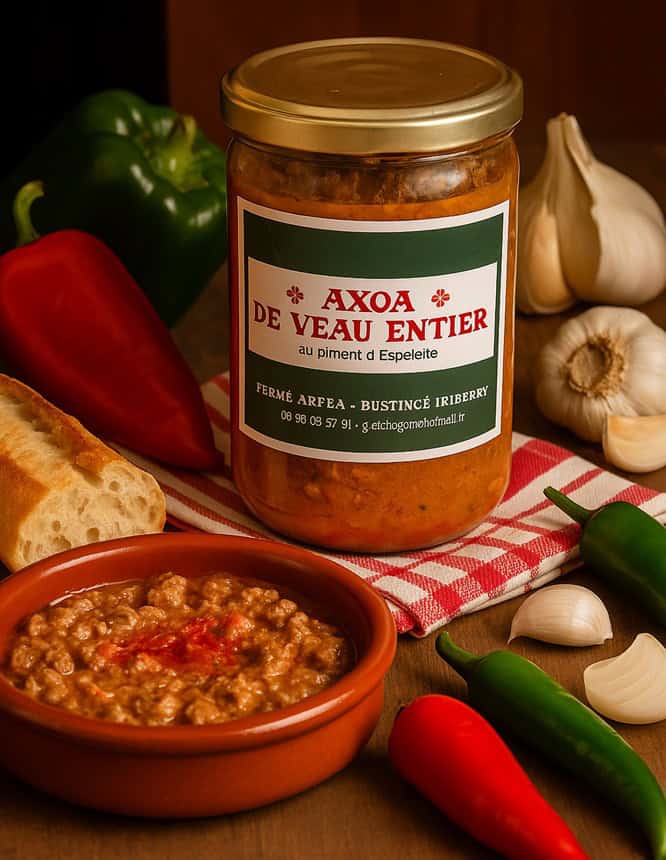 Découvrez le véritable Axoa de veau entier, cuisiné selon la tradition à la ferme Arpéa, au cœur du village de Bustince-Iriberry, tout près de Saint-Jean-Pied-de-Port.