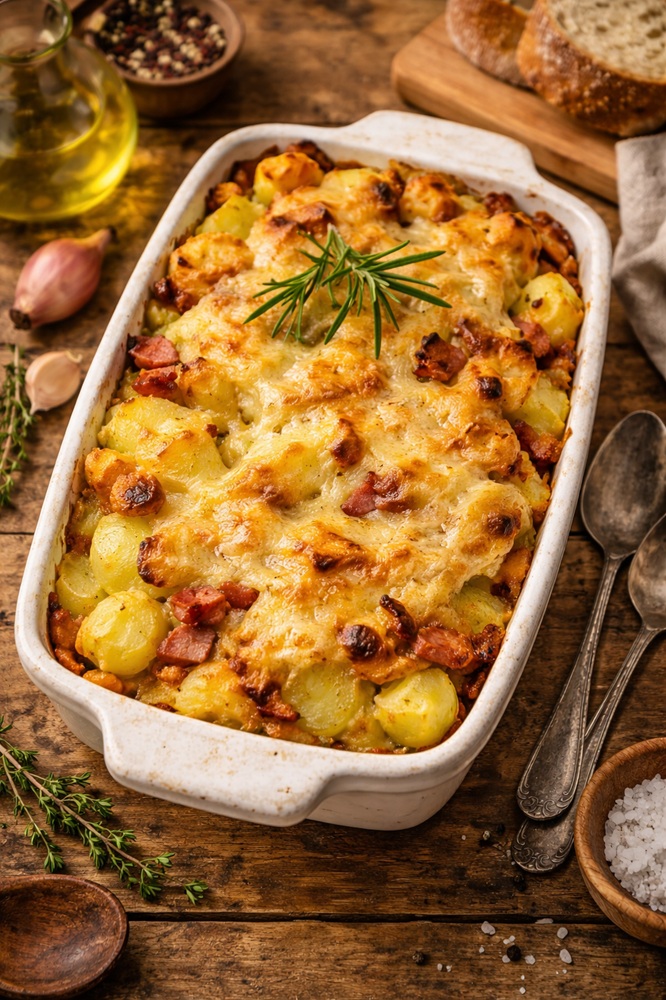 Comme il est toujours mieux d’associer un vin et un fromage issus de la même région, on ne saurait que vous conseiller un vin du Pays Basque tel qu’un vin blanc d’Irouleguy pour accompagner cette tartiflette basque.