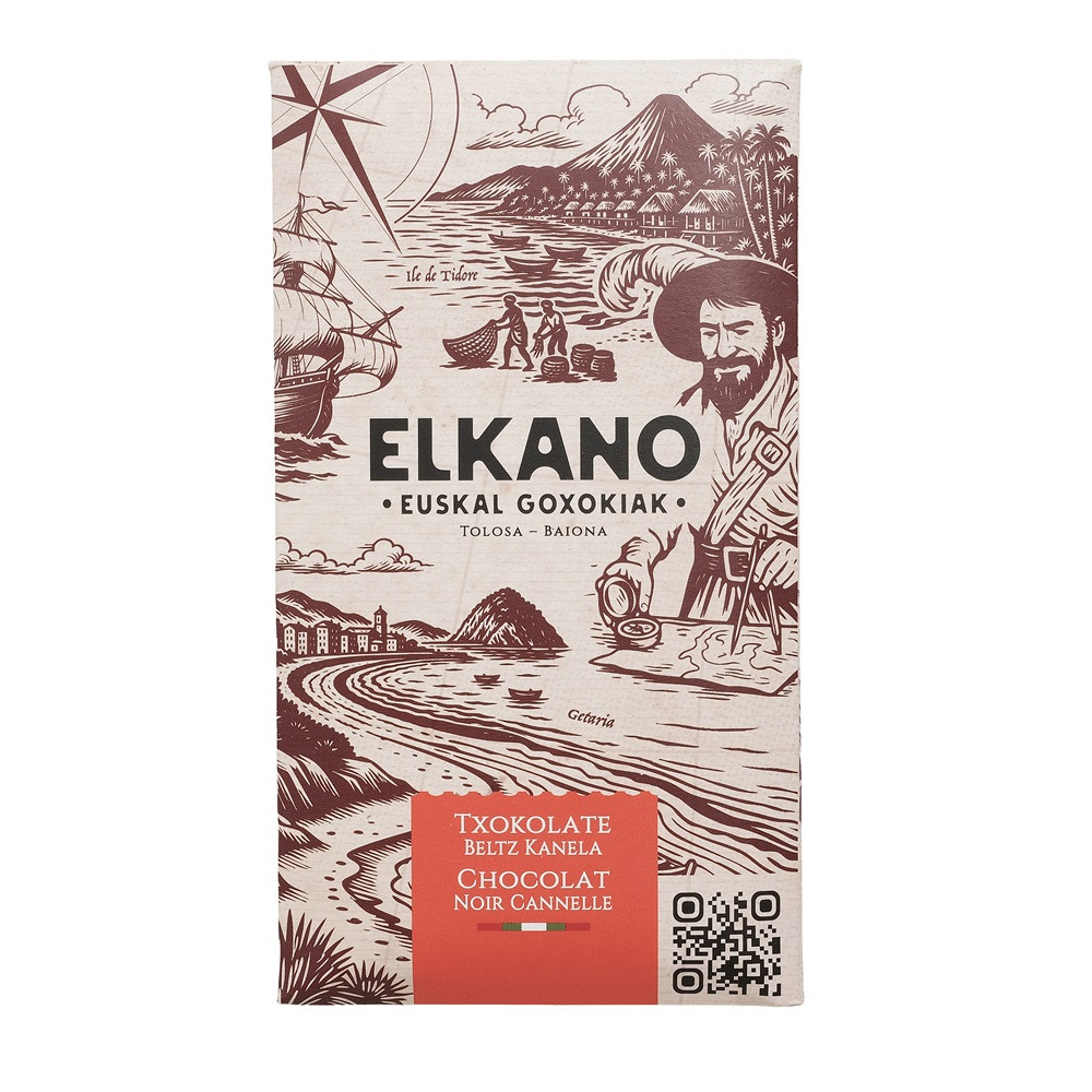 Cap sur les saveurs venues d’ailleurs avec cette tablette de chocolat noir délicatement parfumée à la cannelle. Inspirée des voyages d’Elkano et des épices rapportées des quatre coins du monde, elle dévoile un mariage subtil entre l’intensité du cacao et la chaleur aromatique de la cannelle.
