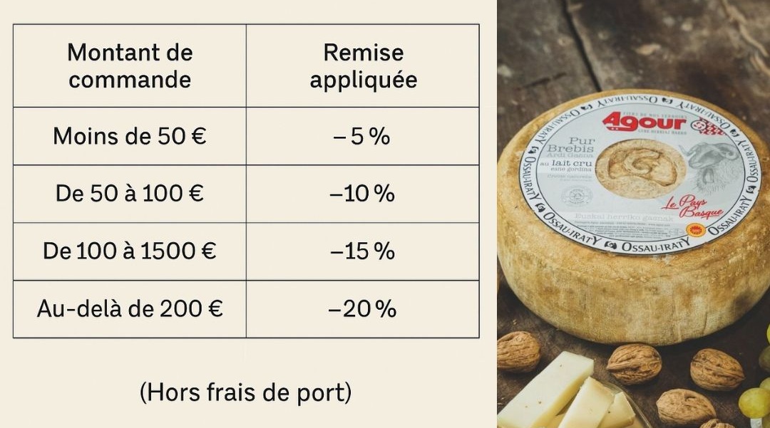 La Maison Agour accompagne les professionnels souhaitant revendre ses produits. Toute commande passée bénéficie d’un tarif préférentiel selon le montant total hors taxe et hors frais de port via notre boutique en ligne.