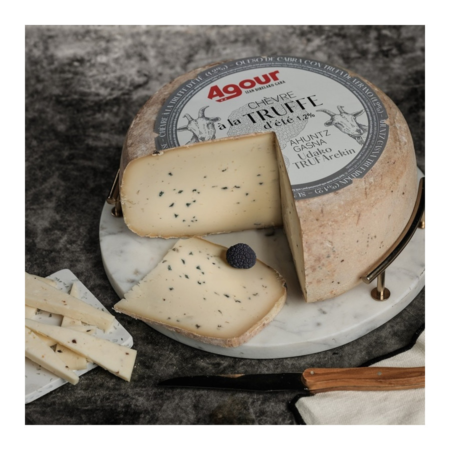 Notre traditionnel fromage de chèvre se décline ici dans une version d’exception à la truffe d’été, à la fois subtile et raffinée. La délicatesse de la truffe s’accorde harmonieusement avec la richesse du lait de chèvre révélant un fromage au caractère élégant, aux arômes fins et envoûtants. Une création gourmande et singulière, idéale pour les amateurs de saveurs délicates et authentiques.